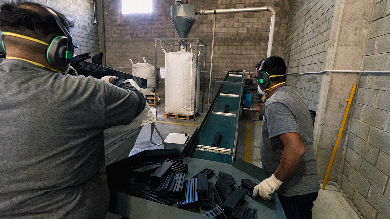 En el proceso de extrusión de los perfiles de PVC, se producen rezagos provenientes de la puesta en marcha de una línea, de recortes para realizar ensayos, entre otros. MUCHTEK pone en valor estos rezagos, reprocesándolos y utilizando un porcentaje del scrap para la fabricación de zócalos, alfajías y otros perfiles auxiliares; generando productos con máxima calidad, ya que provienen de perfiles de aberturas elaboradas bajo los más altos estándares de tecnología y eficiencia.