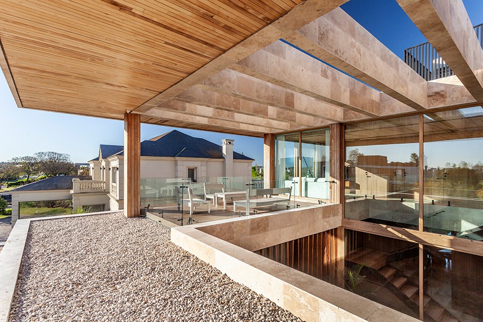 Este proyecto se encuentra en un lote de grandes dimensiones en el Barrio el Golf de Nordelta, en la ciudad de Tigre, provincia de Buenos Aires. La vivienda fue pensada para una familia de procedencia oriental, por lo que la premisa no solo se limitaba a satisfacer necesidades funcionales, sino también celebrar y preservar su herencia cultural a través del diseño arquitectónico. En este sentido, el estudio plantea su diseño bajo la influencia de la obra de Tanizaki “El elogio de la sombra” como uno de los ejes de conceptualización de la luz como material incorpóreo y el uso de elementos como la madera y grandes caras de vidrio como recursos principales de tamización y regulación de la luz.