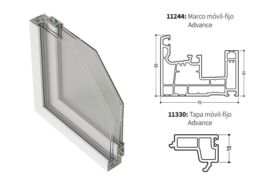 Con guías de aluminio, un nuevo sistema de desagüe oculto y un nuevo sistema de encuentros, la Línea Advance ofrece un gran aislamiento térmico y acústico, con un bajo mantenimiento y una vida útil superior a 50 años.