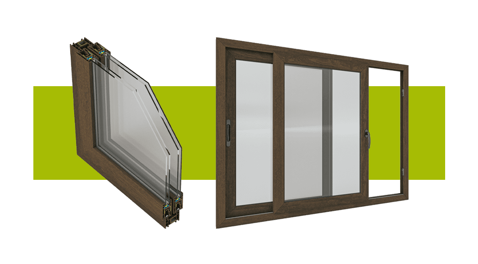 Esta línea es apta para 2, 3, 4 y 6 hojas móviles, con sistema de herrajes standard, permitiendo acristalar vidrios simples y dobles hasta 20 mm de espesor.