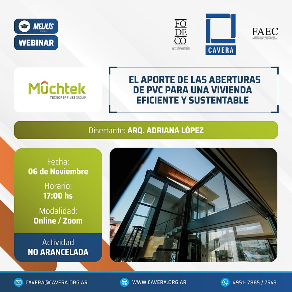 En el marco de las actividades de capacitación y actualización profesional que organiza CAVERA para arquitectos y profesionales de la construcción, la Arq. Adriana López brindó una charla on Line sobre los beneficios de las aberturas de PVC.