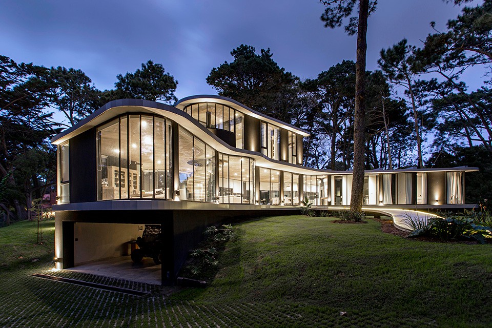 Ubicada en la localidad costera de Cariló, en la provincia de Buenos Aires se emplaza Casa Ameba, una obra emblemática del Estudio Diácono que conjuga diseño, arte, innovación, eficiencia y confort y que fue reconocida internacionalmente con una Mención Honorable por The International Golden Trezzini Awards for Architecture and Design. Esta vivienda unifamiliar evoca la forma de una ameba, uno de los seres vivos más primitivos, que se caracteriza por su forma cambiante. En esta oportunidad, las distintas salientes se adaptan a la forestación y ondulaciones del terreno privilegiado; donde para lograr esa conexión y membrana plasmática que emula a la de una ameba, se eligió sumar una gran superficie vidriada a través de grandes ventanales de la línea EFFICIENT y JUMBO foliadas en Jet Black, que acompañan el estilo del proyecto y la ondulación natural del terreno.