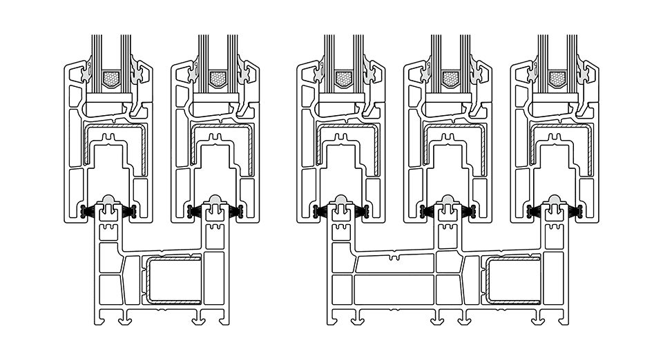 Esta línea es apta para 2, 3, 4 y 6 hojas móviles, con sistema de herrajes standard, permitiendo acristalar vidrios simples y dobles hasta 20 mm de espesor.